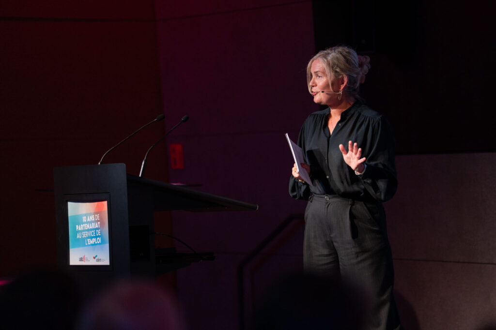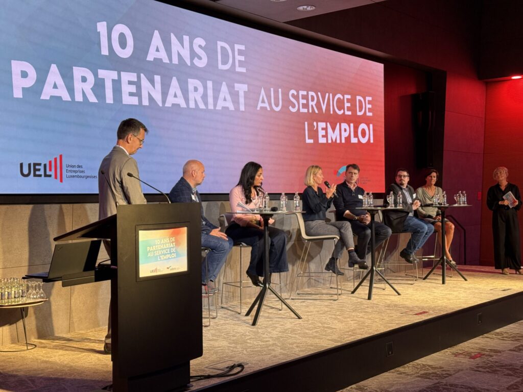 La soirée a été marquée par une table ronde animée par Isabelle Schlesser, Directrice de l’ADEM, et Marc Wagener, Directeur de l’UEL. Six entreprises ayant obtenu le label « Entreprise, partenaire pour l’emploi » ont présenté leurs initiatives en faveur de l’intégration professionnelle : actions pour les demandeurs d’emploi de plus de 45 ans, accompagnement de jeunes sans diplôme, insertion de personnes en situation de handicap, ou de bénéficiaires de protection internationale, embauche de personnes en reconversion dans le secteur de la santé, ou encore conception de formations sur-mesure avec l’ADEM permettant d’obtenir une qualification adaptée aux besoins du marché.
