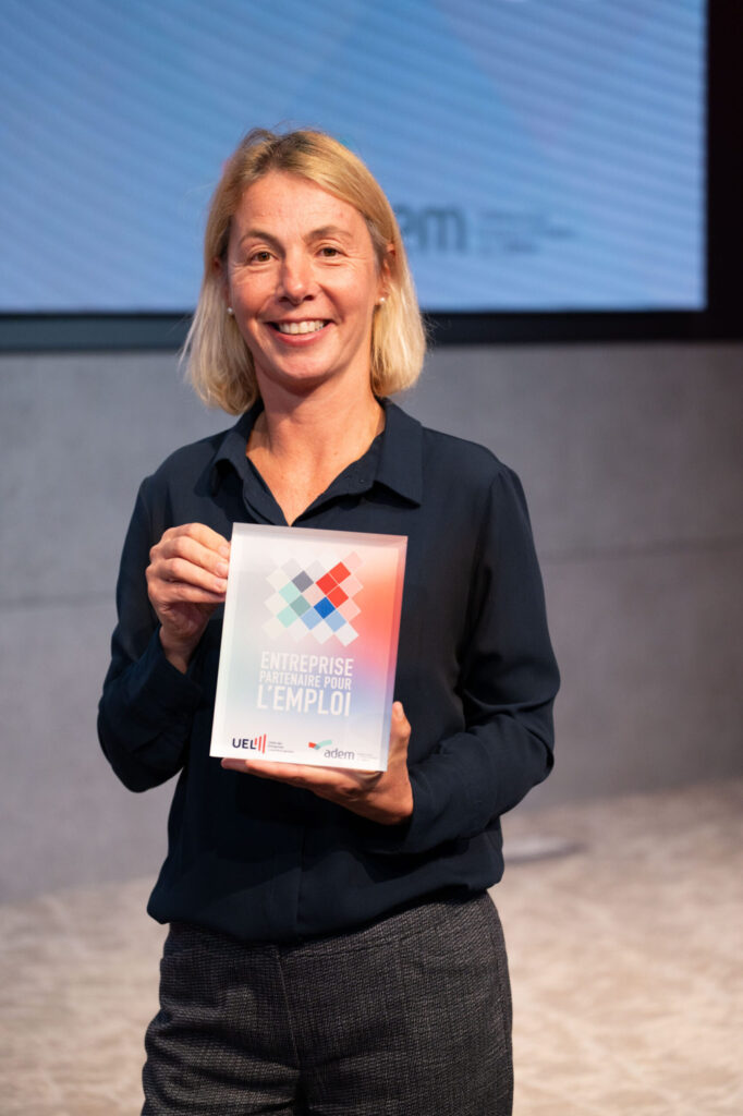 Lors de la cérémonie, Isabelle Schlesser, Directrice de l’ADEM, a remis le nouveau label « Entreprise, partenaire pour l’emploi » aux dix premières entreprises signataires : Banque Raiffeisen, Cactus, Concept & Partners, Hôpitaux Robert Schuman, Hornbach Baumarkt, La Provençale, Luxair, Panelux, Sodexo Luxembourg et Stëftung Hëllef Doheem.