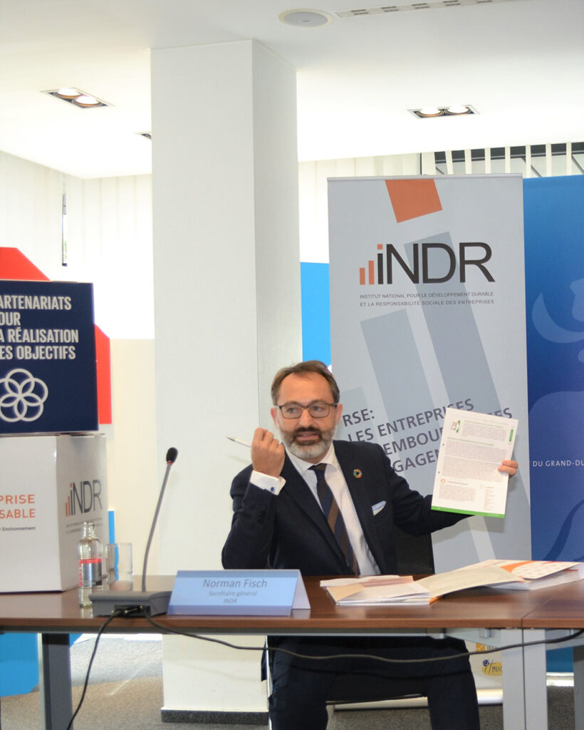 Acteur de référence de la RSE au Luxembourg, l’INDR promeut la RSE au niveau institutionnel et offre un accompagnement complet aux entreprises. En tant que centre de compétences, il assume un rôle normatif, diffuse les connaissances en matière de RSE et collabore avec les principaux acteurs du développement durable. Aux entreprises, l’INDR offre un accompagnement complet, le programme national ESR – ENTREPRISE RESPONSABLE.